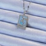 316L Çelik Zincir Gümüş Renk Mavi Mineli Tarot Kolye