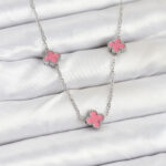 316L Çelik Zincir Gümüş Renk Pembe Baby Boy Yonca Kadın Kolye