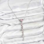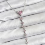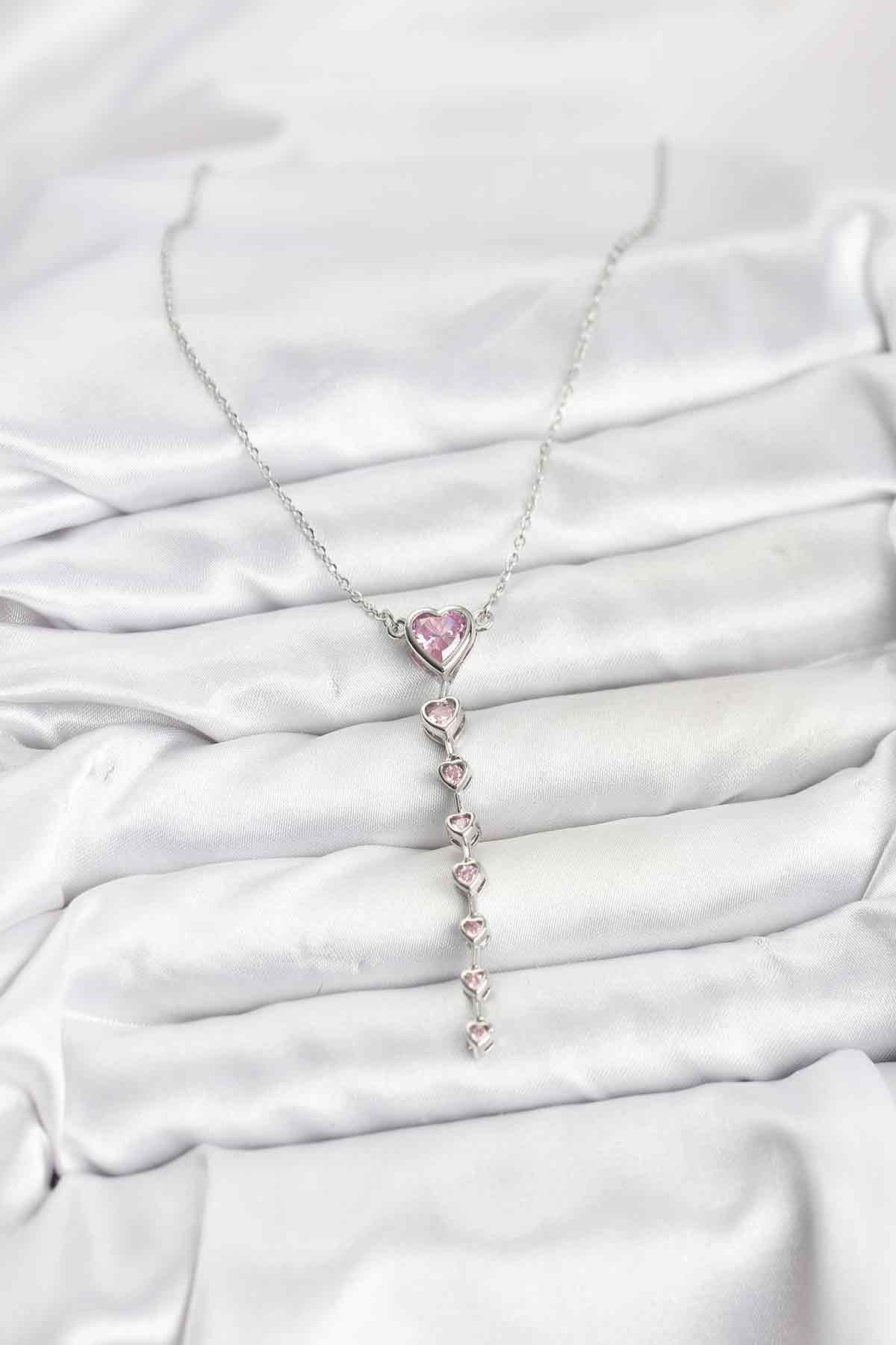 316L Çelik Zincir Gümüş Renk Pembe Kalp Kadın Kolye