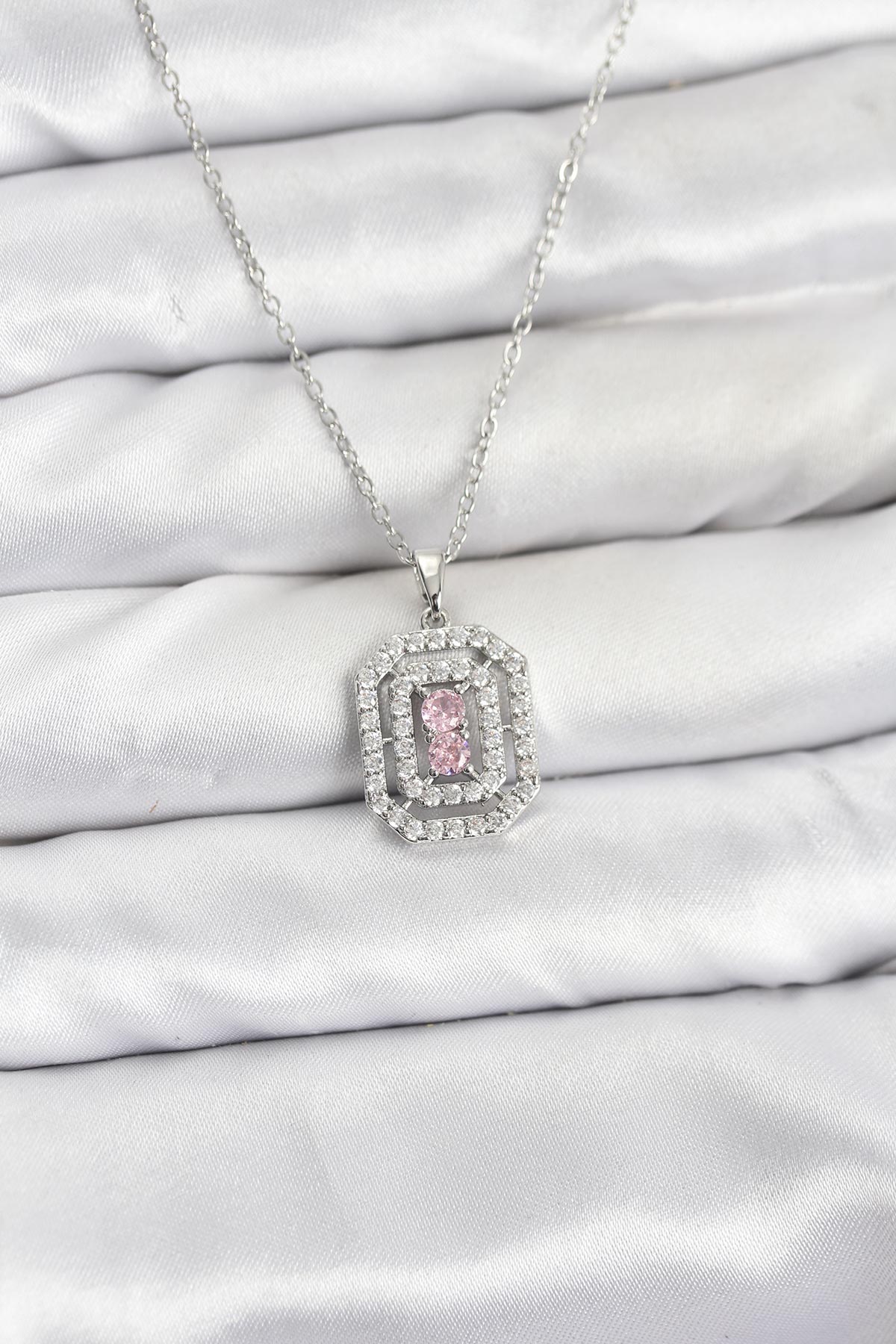 316L Çelik Zincir Gümüş Renk Plaka Model Zirkon Taşlı Kadın Kolye