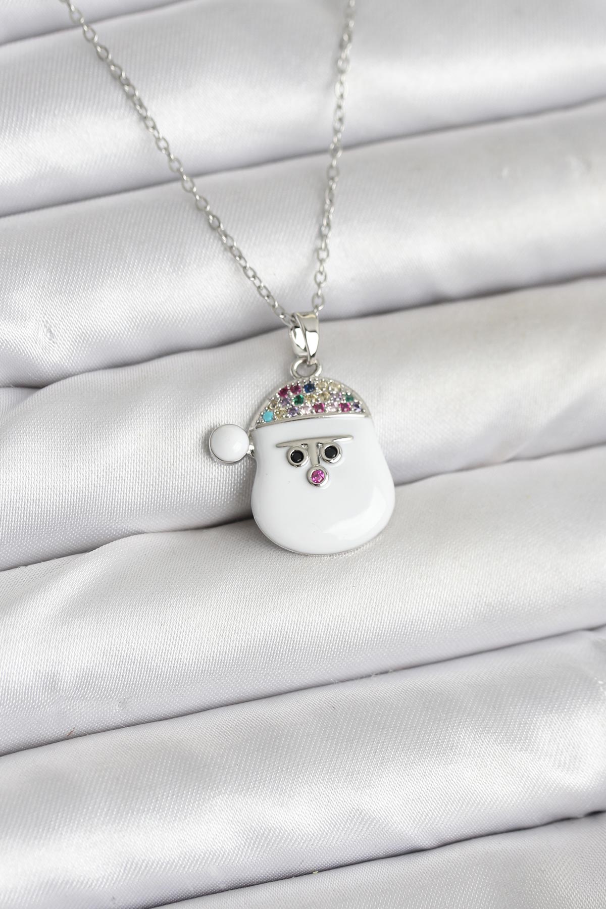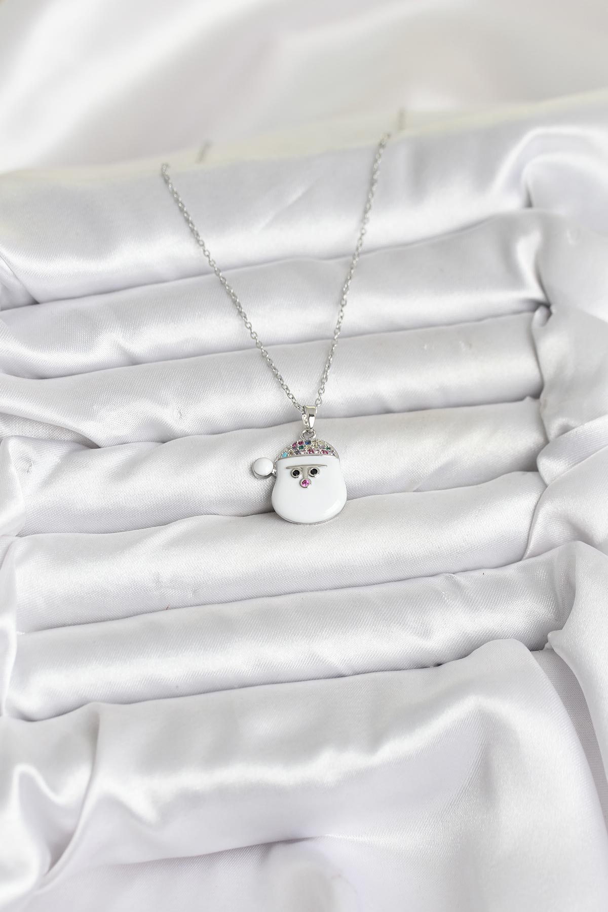 316L Çelik Zincir Gümüş Renk Şapkalı Kardan Adam Kafası Model Yılbaşı Temalı Kadın Kolye