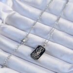 316L Çelik Zincir Gümüş Renk Siyah Mineli Tarot Kolye