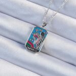 316L Çelik Zincir Gümüş Renk Taç ve Kız Figürlü Renkli Mineli Tarot Kolye