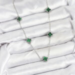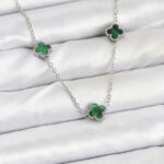 316L Çelik Zincir Gümüş Renk Yeşil Baby Boy Yonca Kadın Kolye