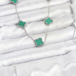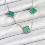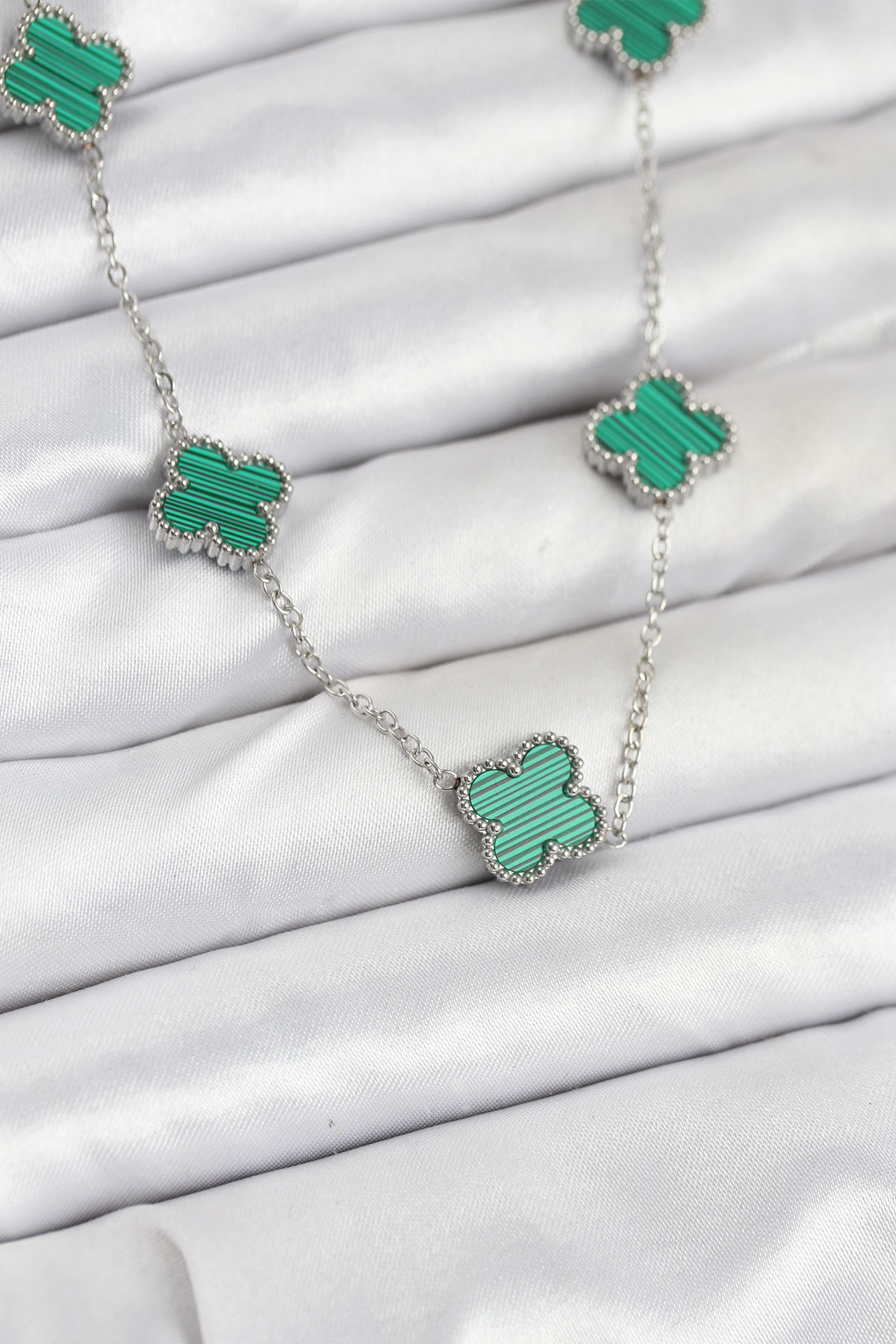 316L Çelik Zincir Gümüş Renk Yeşil Yonca Kadın Kolye