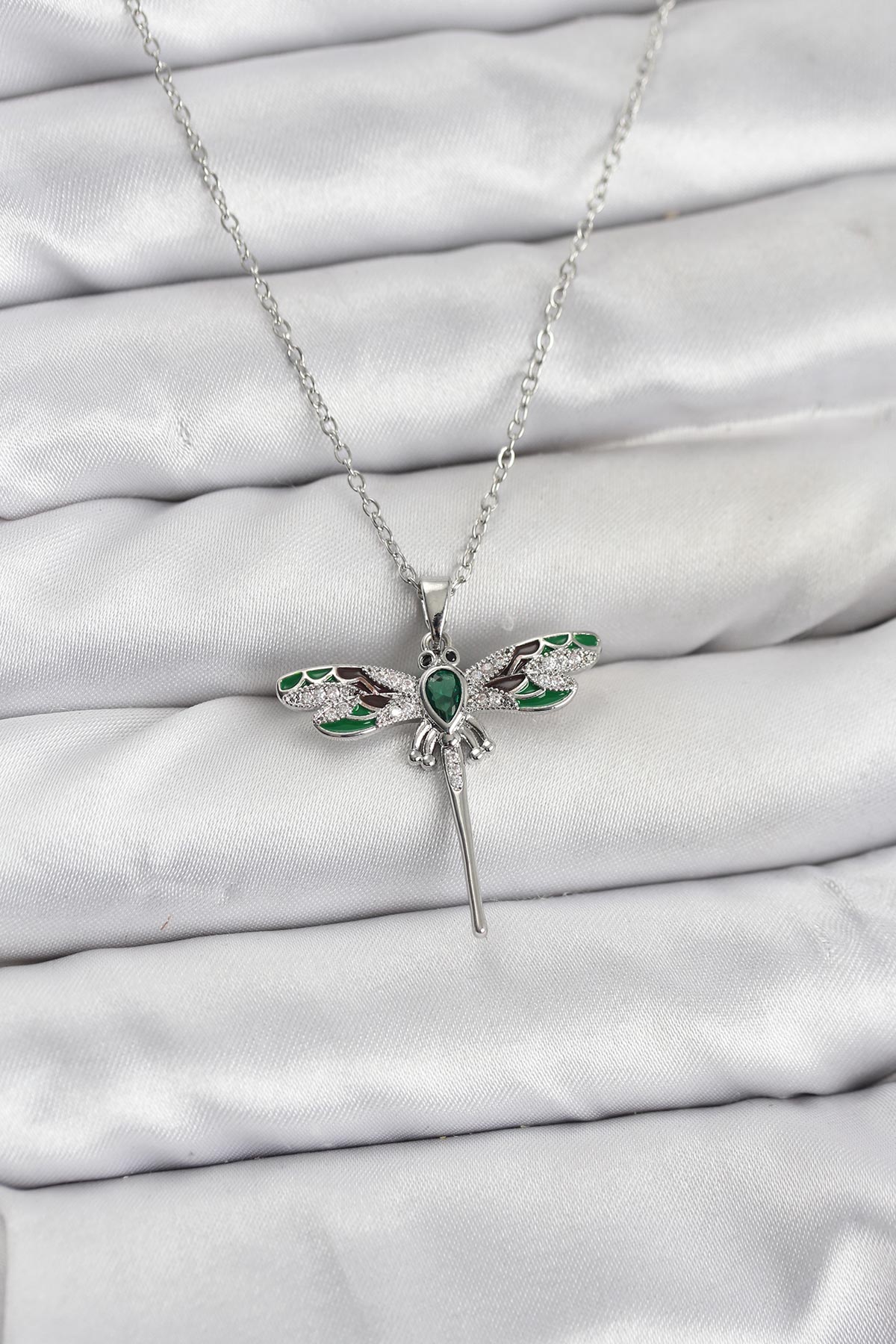 316L Çelik Zincir Gümüş Renk Yusufçuk Model Zirkon Taşlı Kadın Kolye