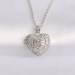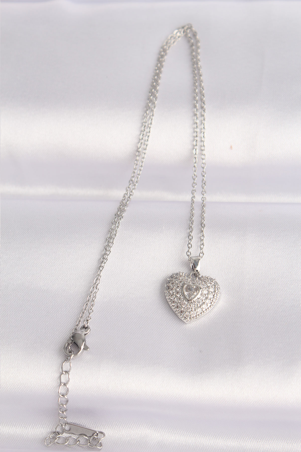 316L Çelik Zincir Gümüş Renk Zirkon Taşlı Kalp Kolye