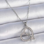 316L Çelik Zincir Gümüş Renk Zirkon Taşlı Kalp Model Melek Detay Kadın Kolye