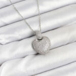 316L Çelik Zincir Gümüş Renk Zirkon Taşlı Kalpli Kadın Kolye
