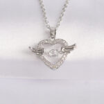 316L Çelik Zincir Gümüş Renk Zirkon Taşlı Kanatlı Kalp Kolye