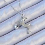 316L Çelik Zincir Gümüş Renk Zirkon Taşlı Kelebekli Mineli Ay Kolye