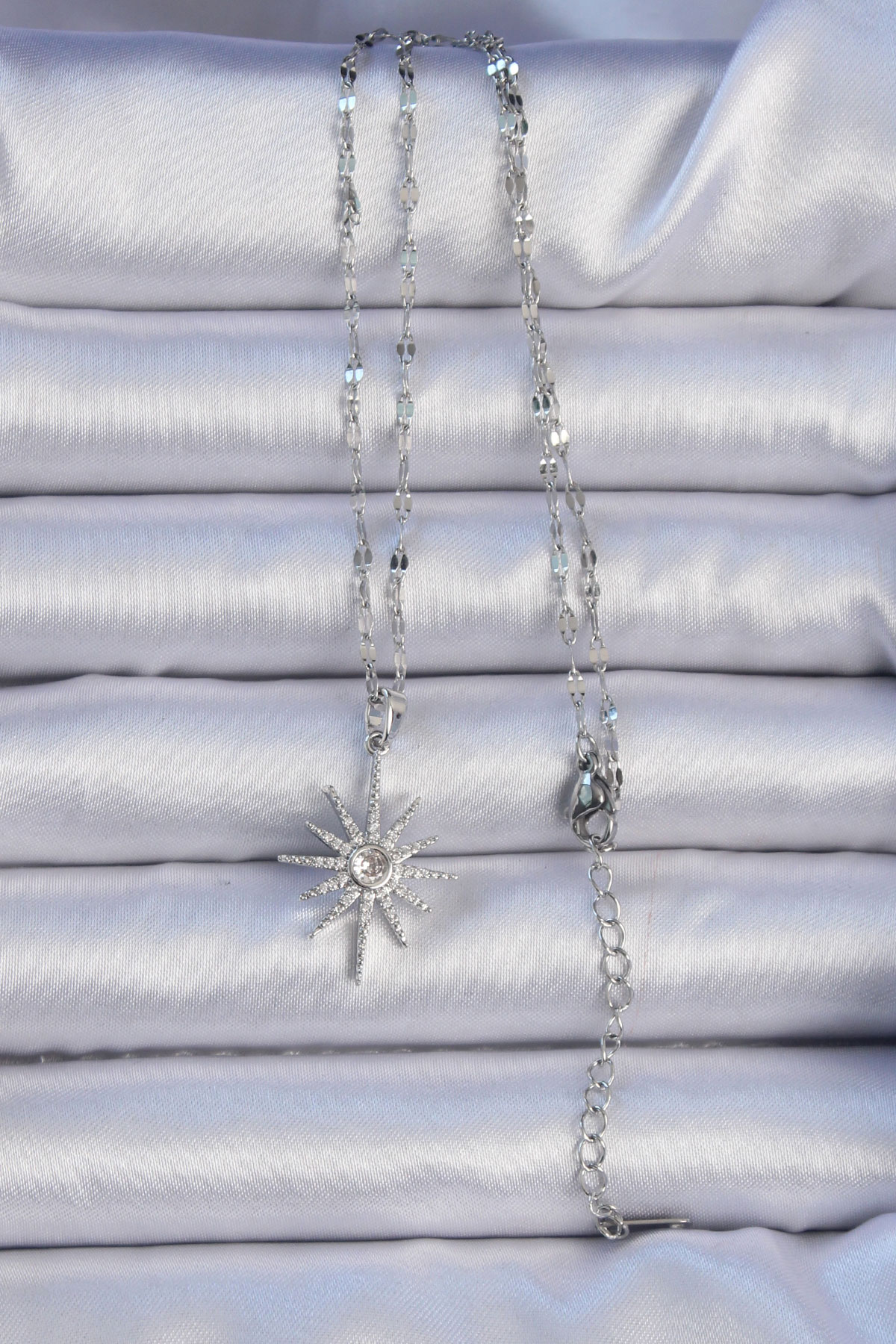 316L Çelik Zincir Gümüş Renk Zirkon Taşlı Kutup Yıldızı Kolye