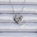 316L Çelik Zincir Gümüş Renk Zirkon Taşlı Mıknatıslı Kalp Kolye