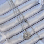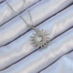 316L Çelik Zincir Gümüş Renk Zirkon Taşlı Parlayan Güneş Kolye