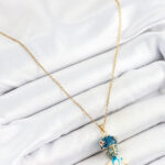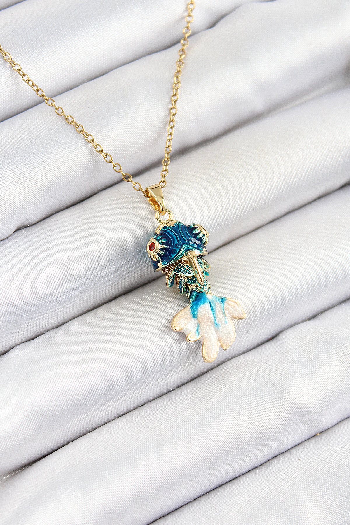 316L Çelik Zincir Mavi Balık Model Gold Renk Kadın Kolye