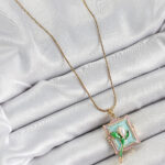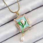 316L Çelik Zincir Turkuaz Sanatsal Portre Sallantılı İnci Detaylı Lale Model Gold Renk Kadın Kolye
