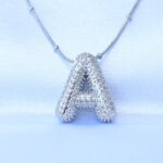 316L Çelik Zincirli Zirkon Taşlı A Harfli Gümüş Renk Bubble Kolye