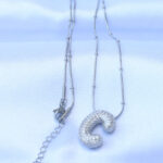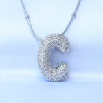 316L Çelik Zincirli Zirkon Taşlı C Harfli Gümüş Renk Bubble Kolye
