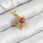 316L Çelik Zirkon Taşlı Döner Güneş Model Gold Renk Kadın Kolye