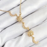 316L Çelik Zirkon Taşlı Güneş Ve Ay Model Gold Renk Kadın Kolye