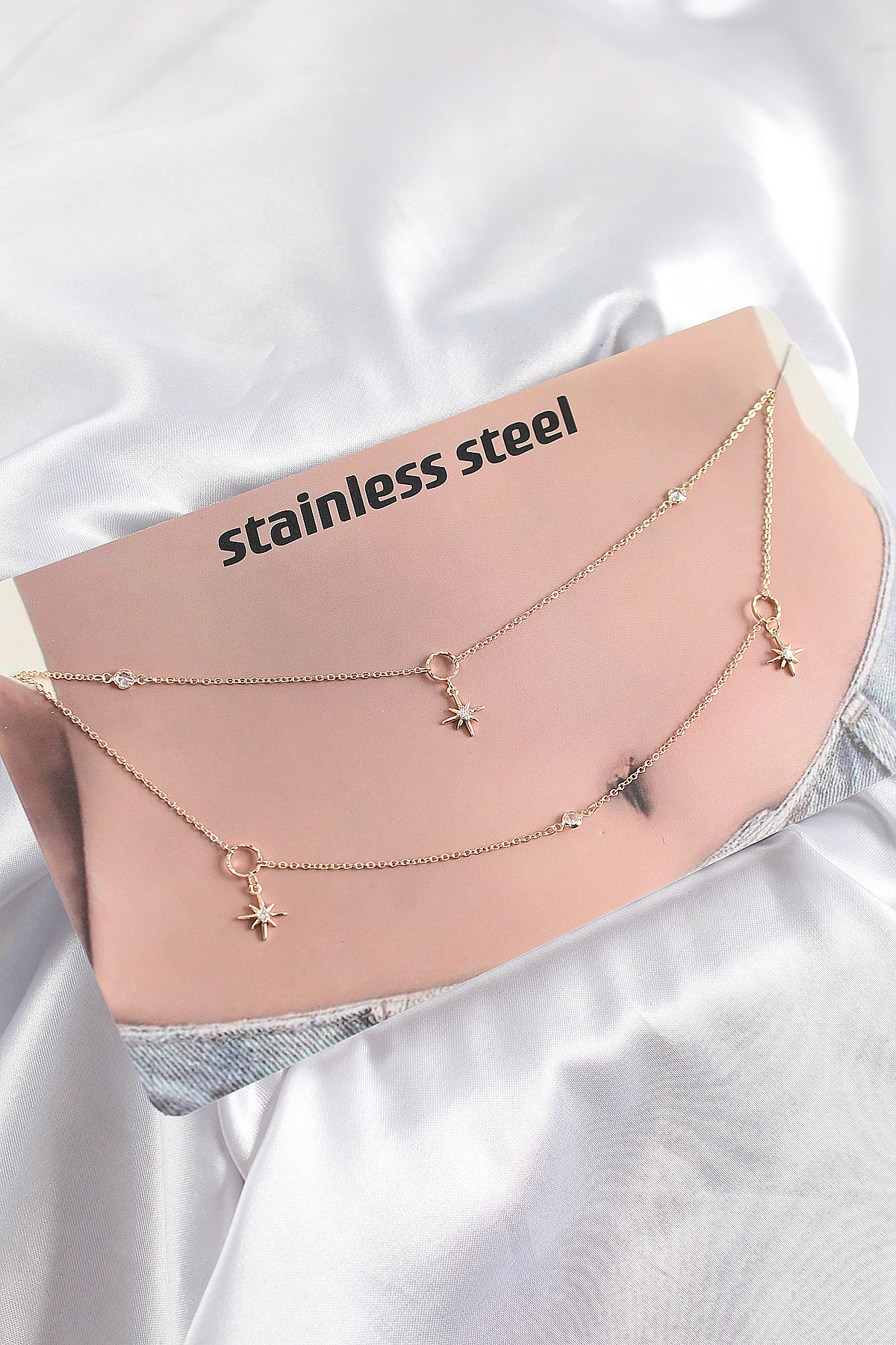 316L Çelik Zirkon Taşlı Kutup Yıldızı Model Gold Renk Göbek Bel Zinciri