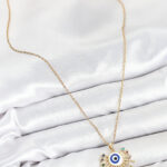 316L Çelik Zirkon Taşlı Nazar Model Gold Renk Kadın Kolye