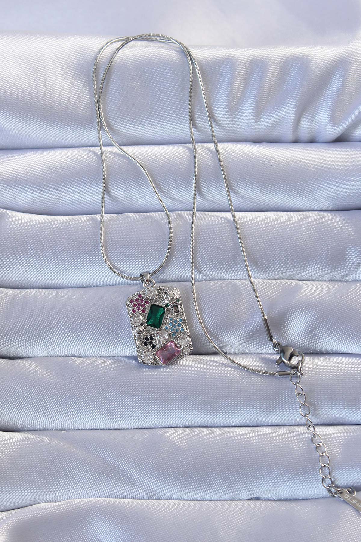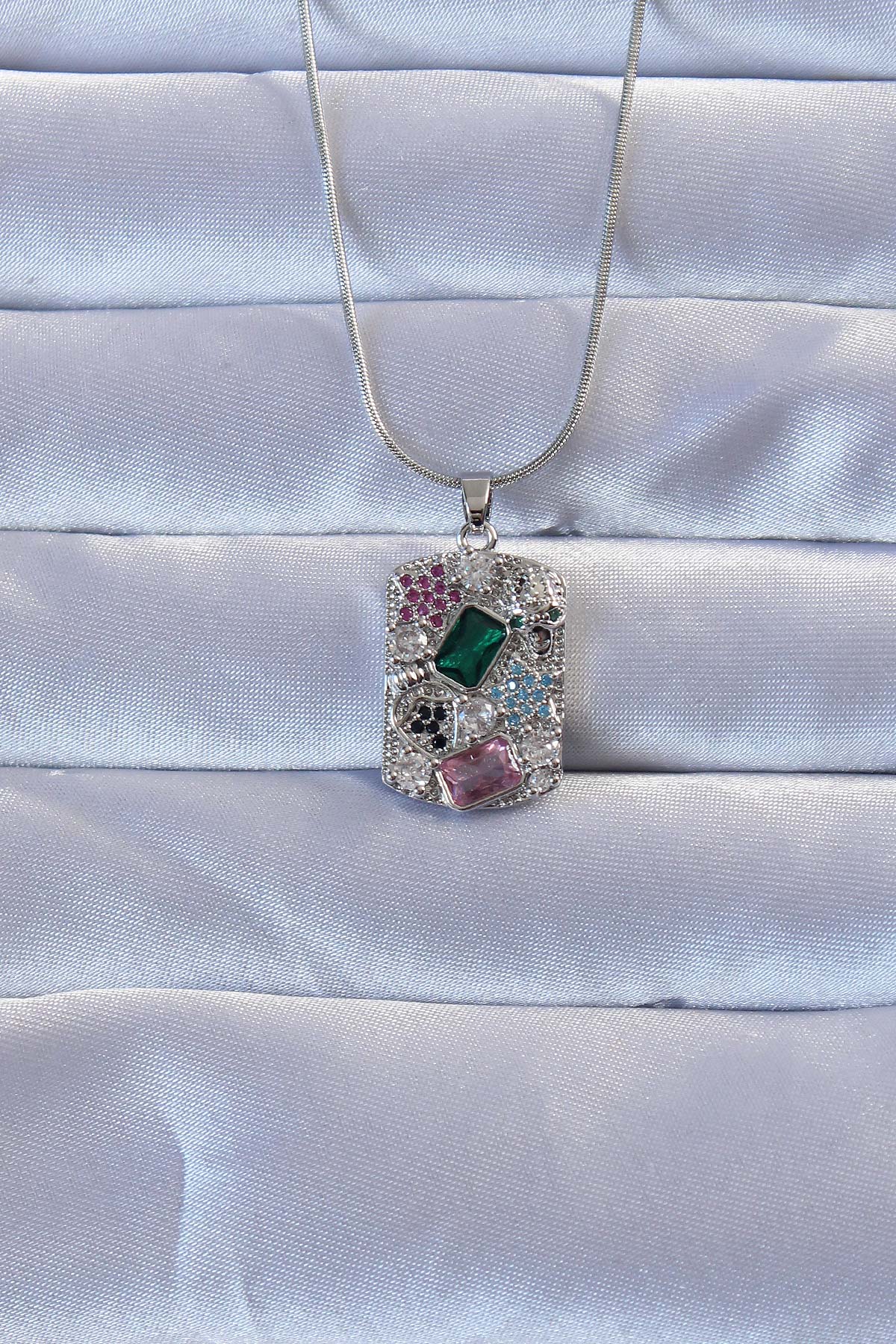 316L Gümüş Renk Çok Renkli Zirkon Taşlı Vintage Kolye