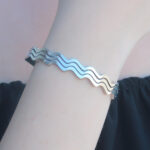 316L Kararmaz Çelik Gümüş Renk Dalga Model Kelepçe Kadın Bileklik