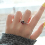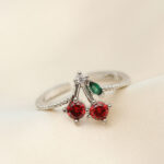 Ayarlamalı Gümüş Renk Kristal Taşlı Kiraz Yüzük
