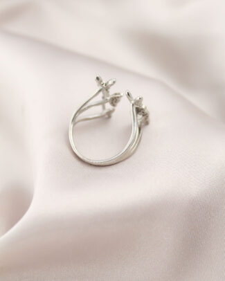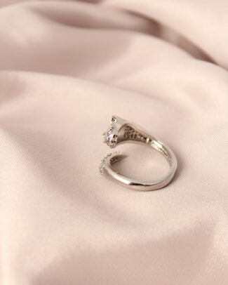 Ayarlamalı Gümüş Renk Metal Zirkon ve Kristal Taşlı Oval Model Yüzük