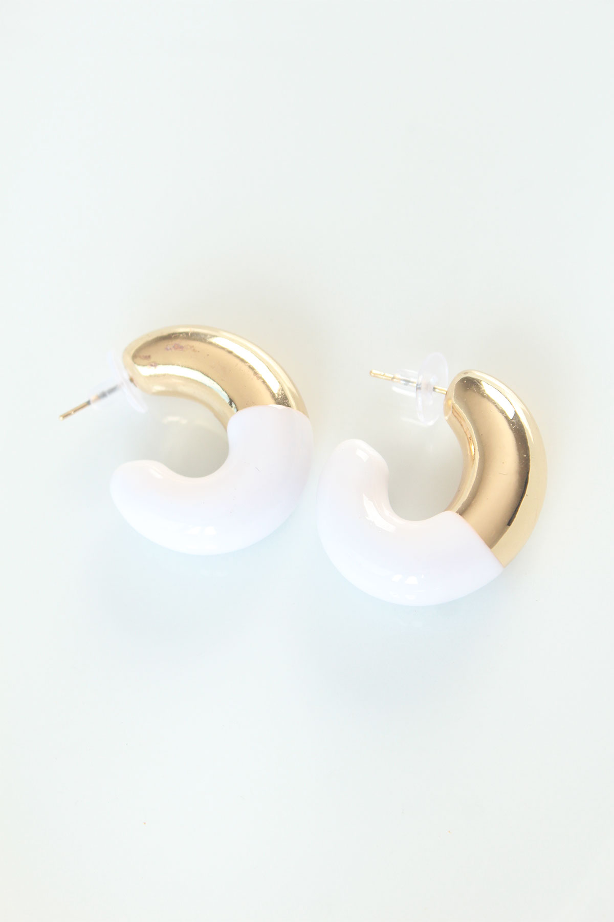 CCB Beyaz Gold Çift Renk Küpe