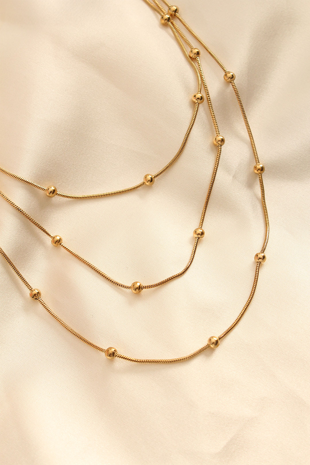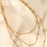 Çelik Altın Renkli Topçuk Tasarımlı Çoklu Kolye