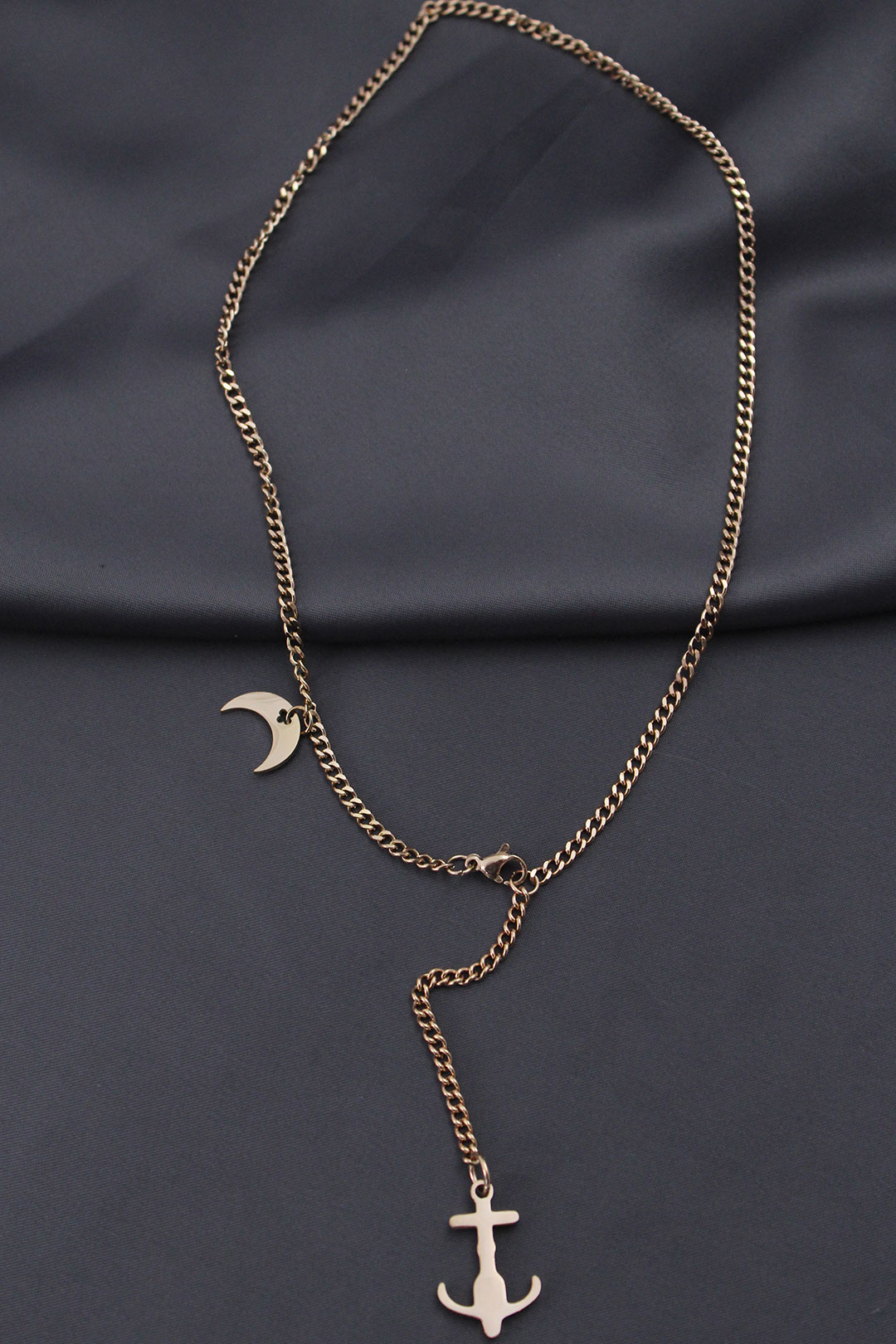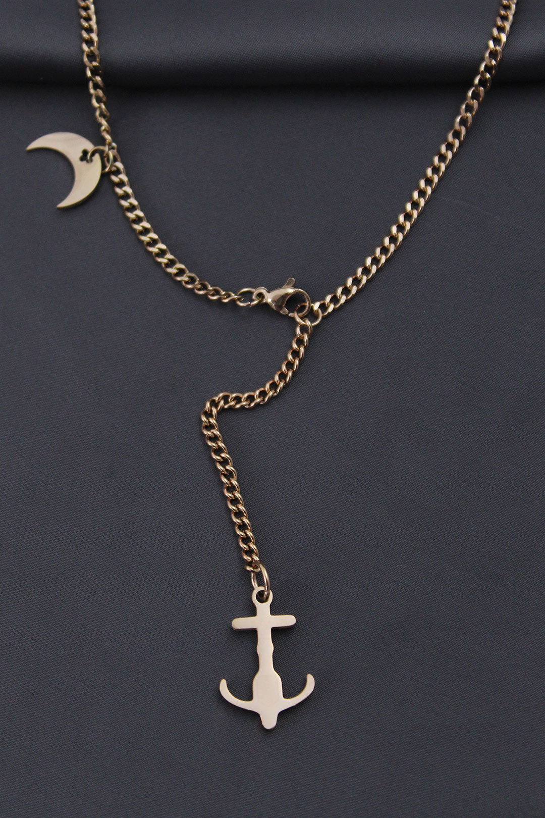 Çelik Rose Renk Çapa Tasarımlı Kadın Kolye