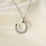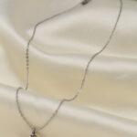 Çelik Silver Renk Zirkon Taşlı Çivi Model Kadın Kolye