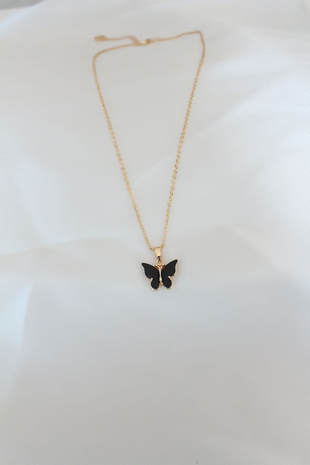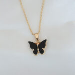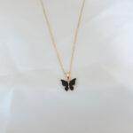 Gold Kaplama Siyah Renkli Sedefli Kelebek Kolye
