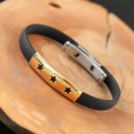 Havalı ve şık olmak için Gold Renk Çelik Yıldızlı Tasarım Siyah Renk Silikon Erkek Bileklik modeli uygun bir seçim olacak.