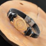 Gold Renk Metal Sol Anahtarlı Tasarım Siyah Renk Deri Erkek Bileklik