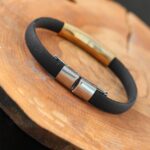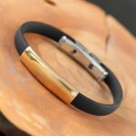 Şık beyler için Gold Renk Metal Tasarım Siyah Renk Silikon Erkek Bileklik modeli uygun bir seçim olacak.