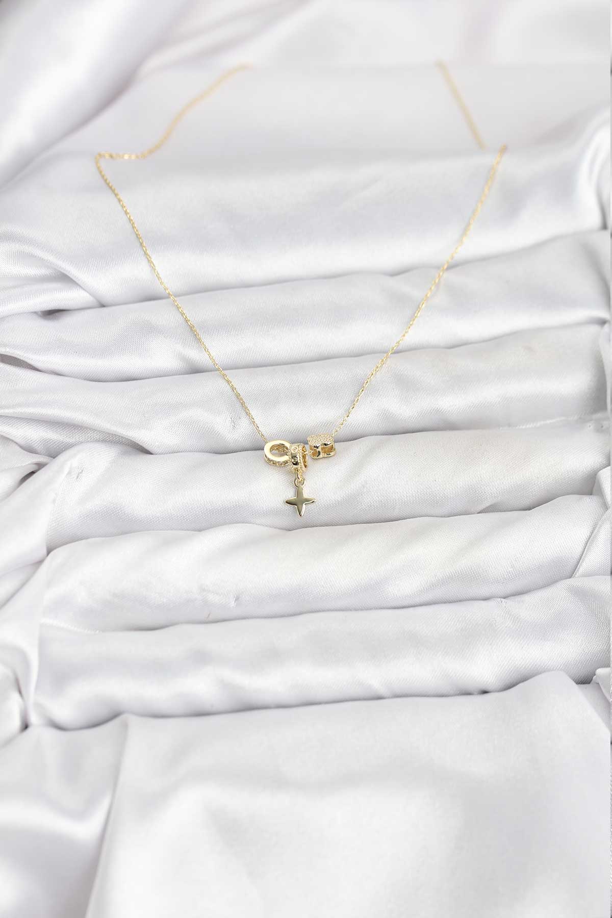 Gold Renk Pirinç Minimal Charmlı Kadın Kolye