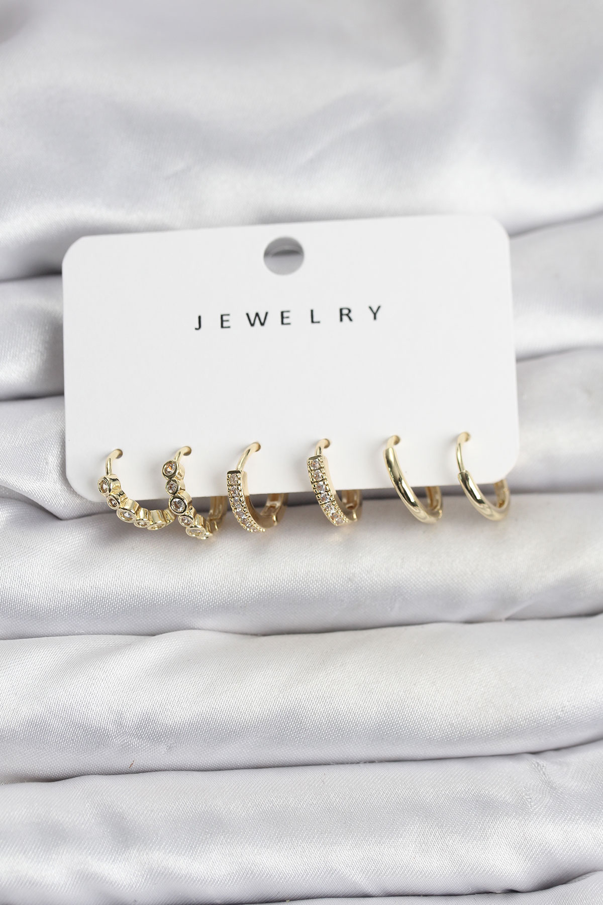 Gold Renk Pirinç Zirkon Taşlı Kadın Küpe Seti