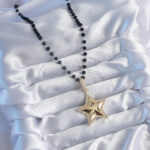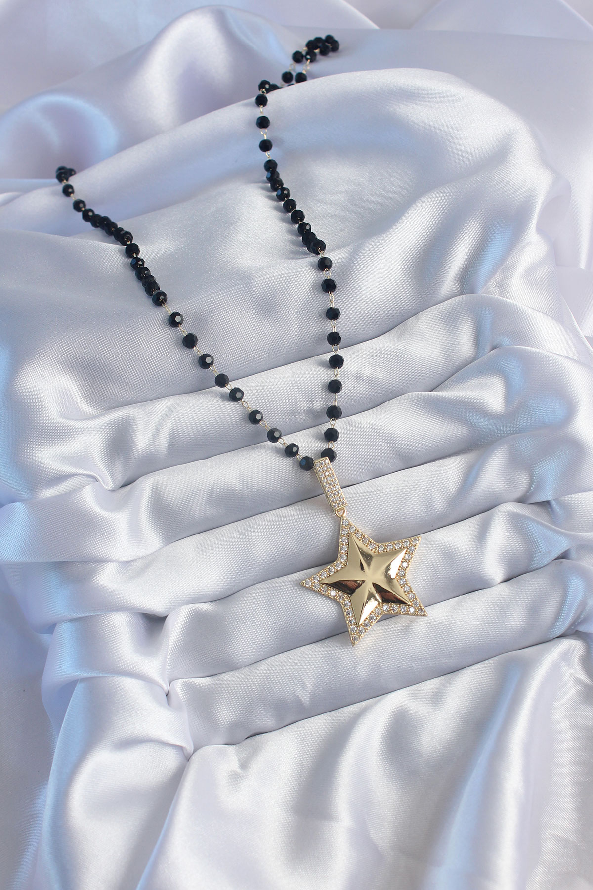Gold Renk Siyah Boncuk Zirkon Taşlı Yıldız Model VİP Seri Kadın Kolye