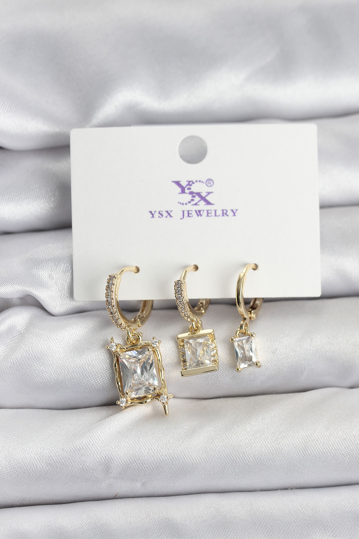 Gold Renk Zirkon Taşlı Kadın Küpe