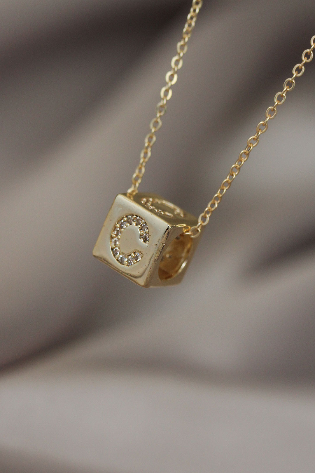 Gold Renk Zirkon Taşlı Küp Model C Harfli Kolye