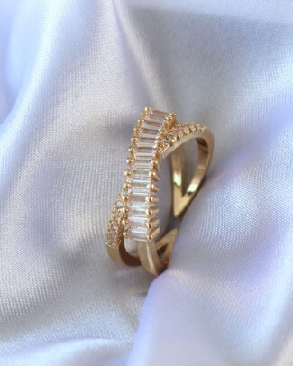 Gold Renk Zirkon Taşlı Pirinç Kadın Yüzük