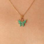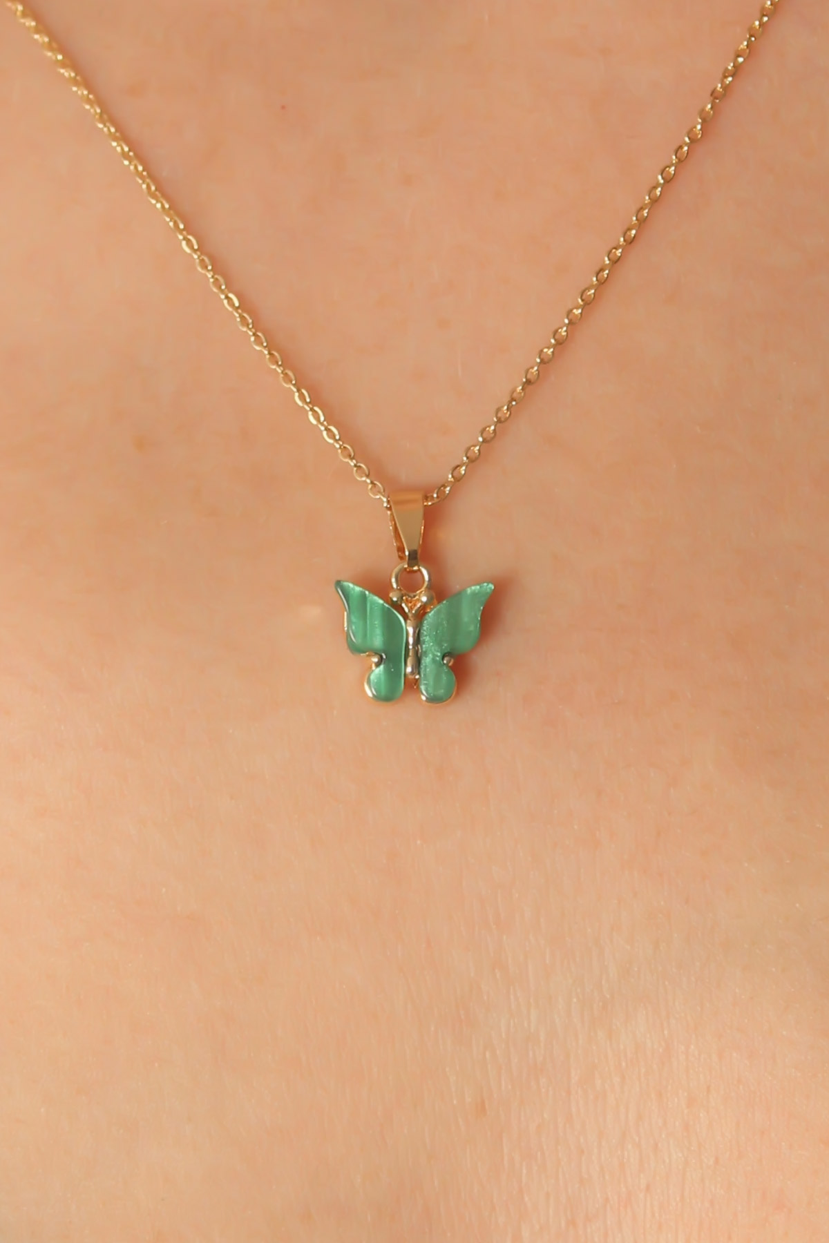 Gold Yeşil Renk Kelebek Figür Kadın Kolye