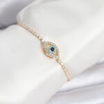 Göz Model Zirkon Taşlı Gold Renk Asansörlü Su Yolu Bileklik