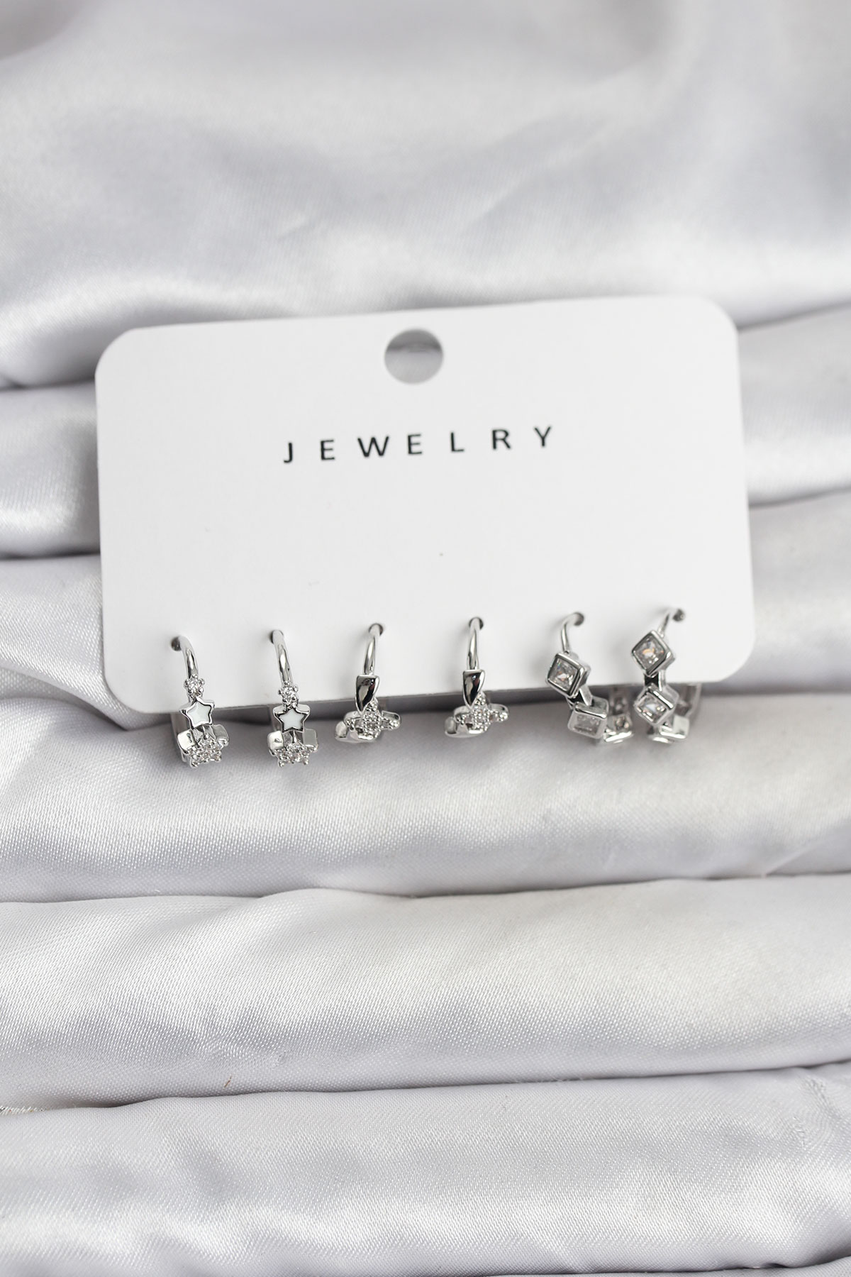 Gümüş Renk Pirinç Yıldız Modelli Kadın Küpe Seti