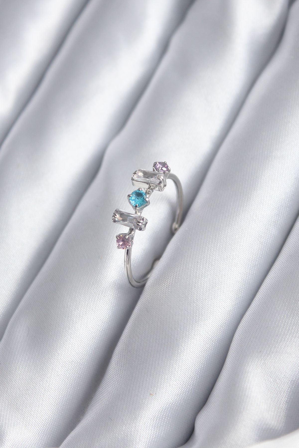 Gümüş Renk Renkli Zirkon Taşlı Kadın Yüzük