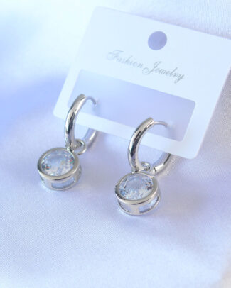 Gümüş Renk Zirkon Taşlı Pirinç Kadın Küpe