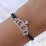Gümüş Renk Zirkon Taşlı Taç Figür Makrome Bileklik